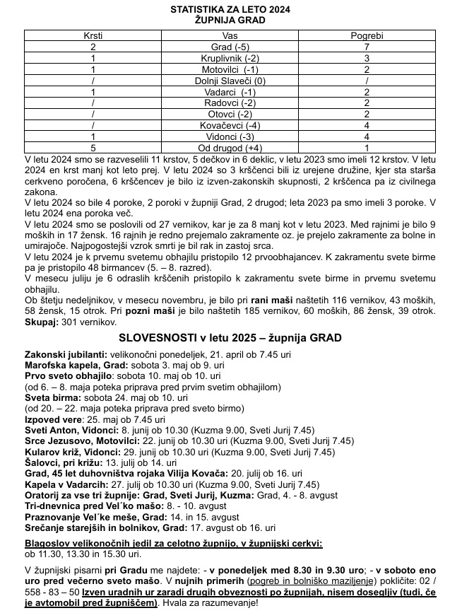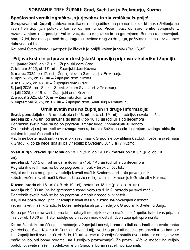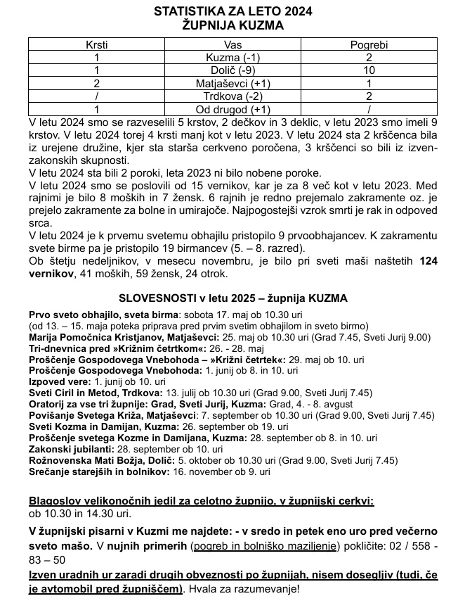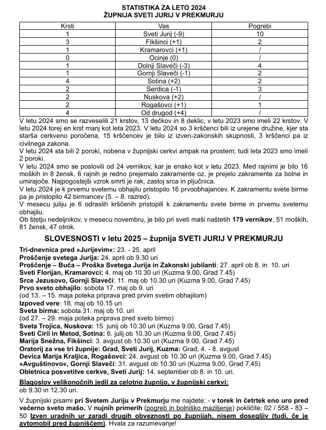 SLOVESNOSTI v letu 2025 – župnija SVETI JURIJ V PREKMURJU