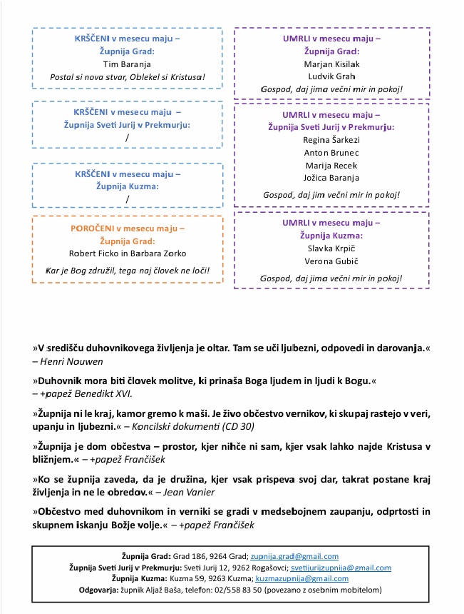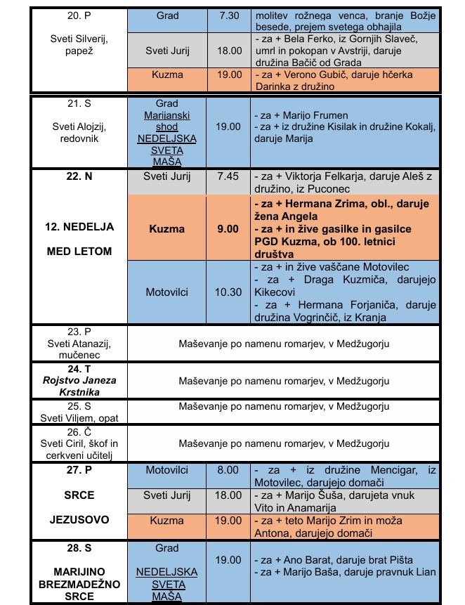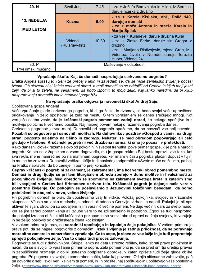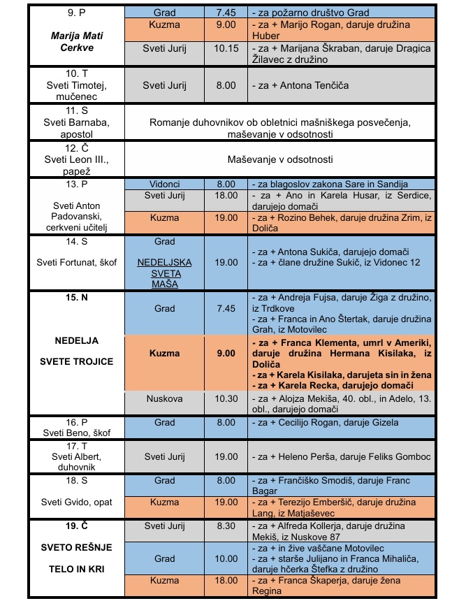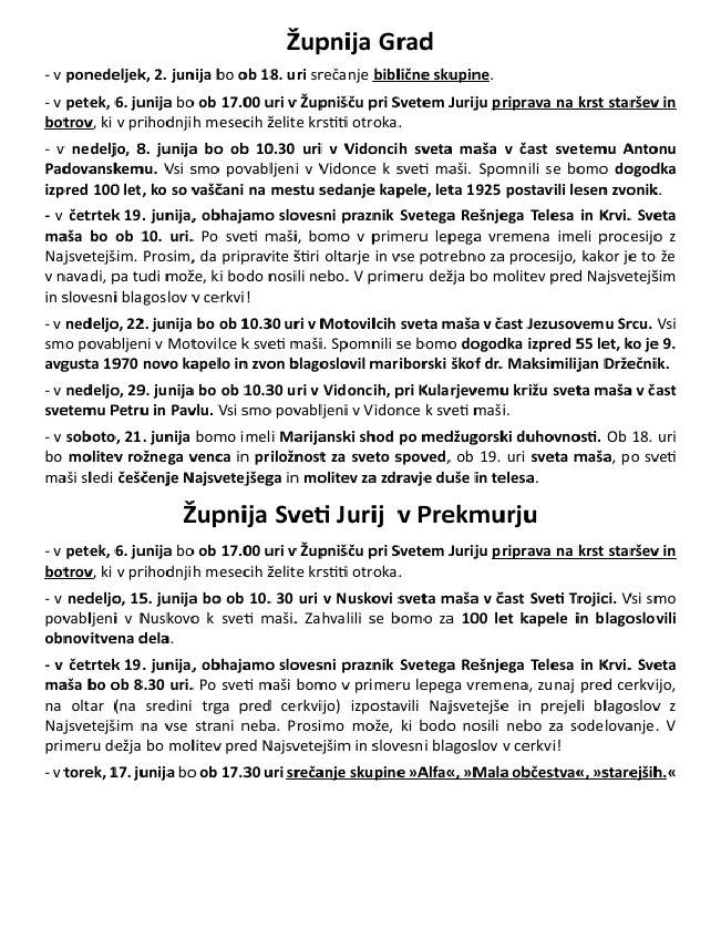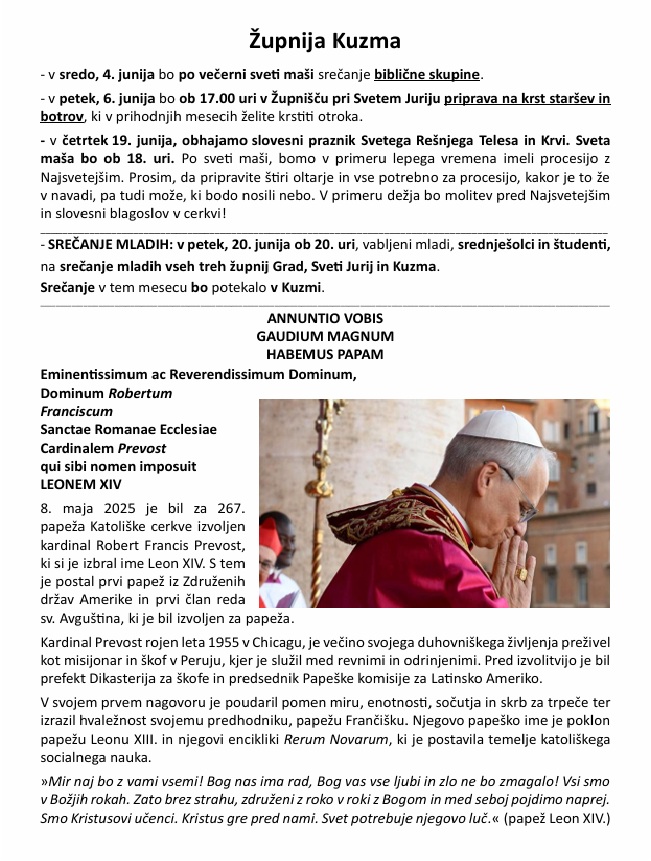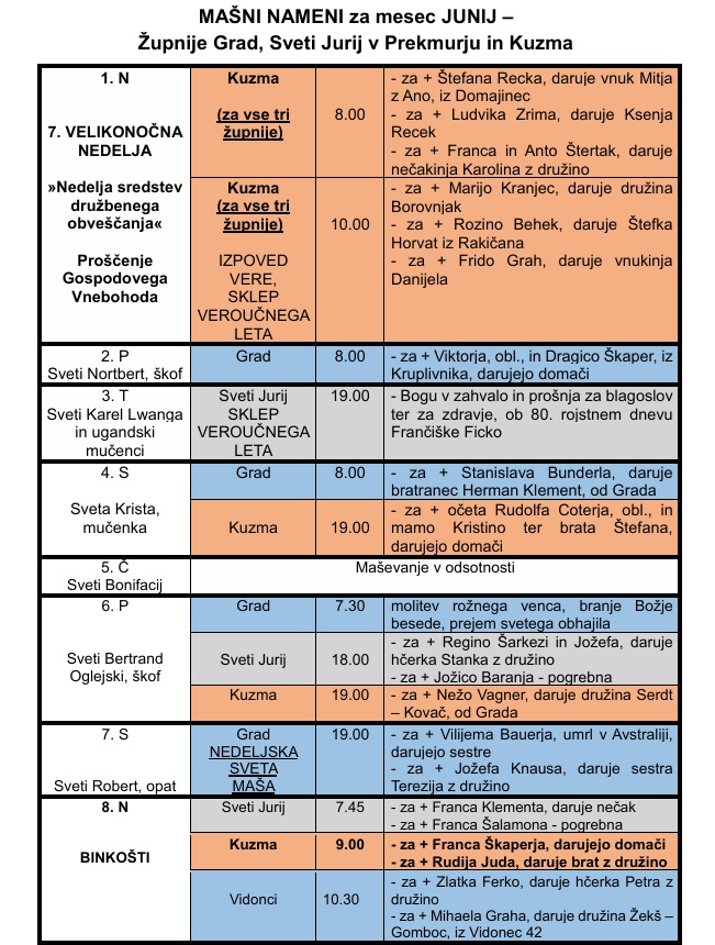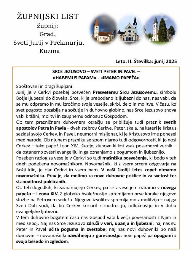 Župnijski list za mesec junij in mašni nameni za mesec junij 2025