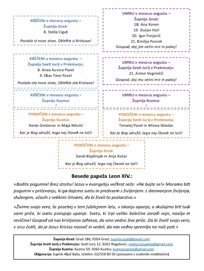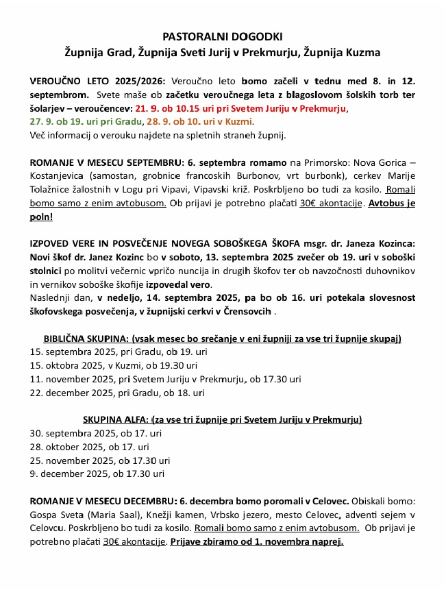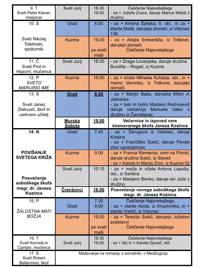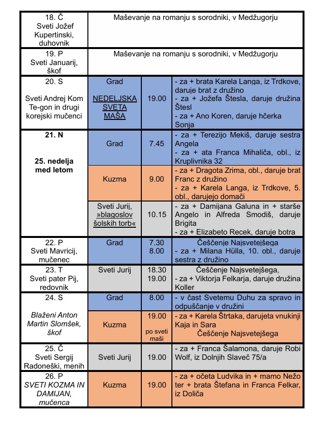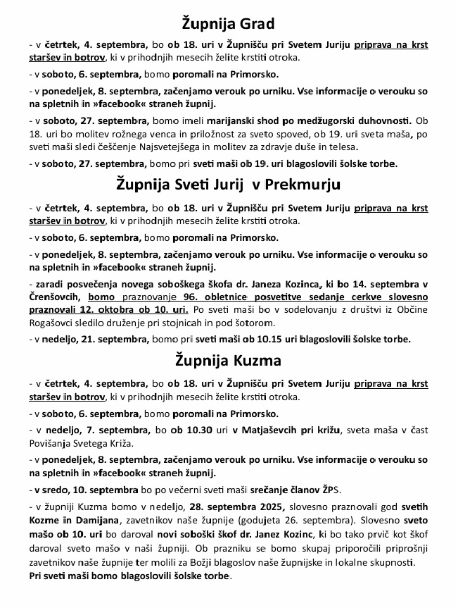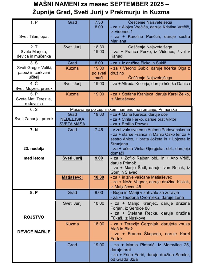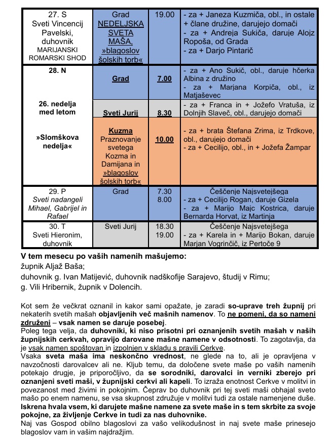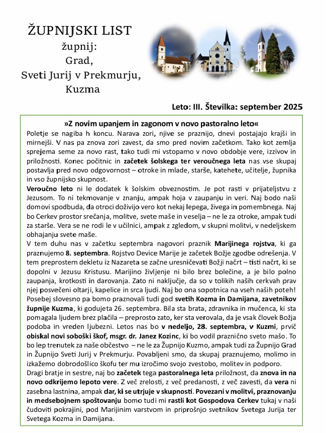 Župnijski list za mesec september in mašni nameni za mesec september 2025