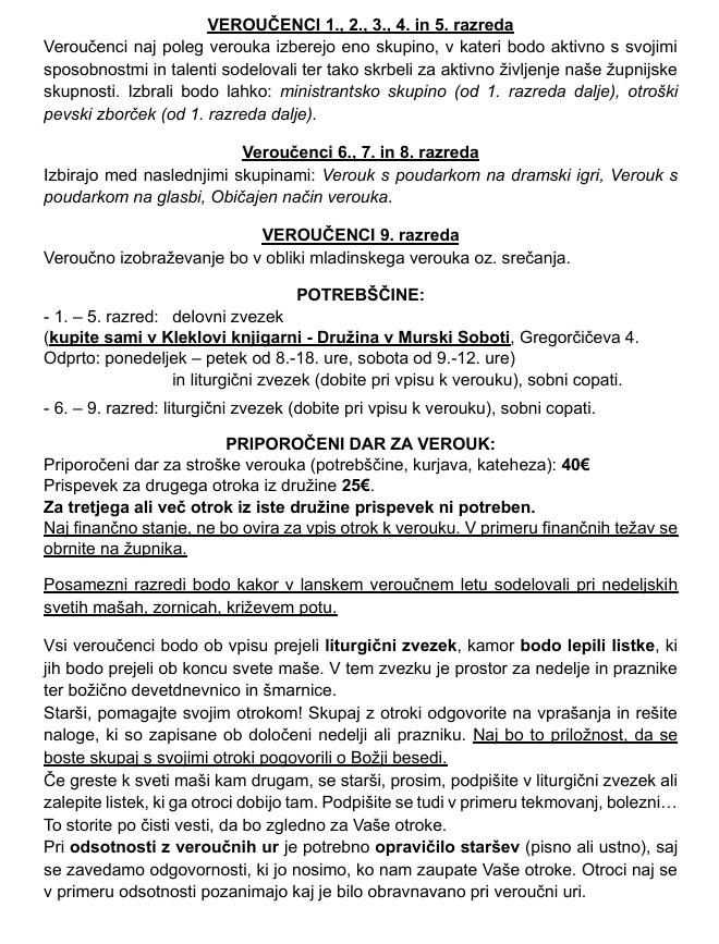 VEROUČNO LETO 2025 / 2026 - SPREMEMBE in DOPOLNITVE