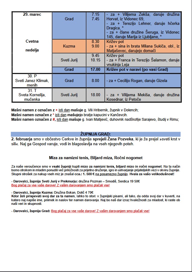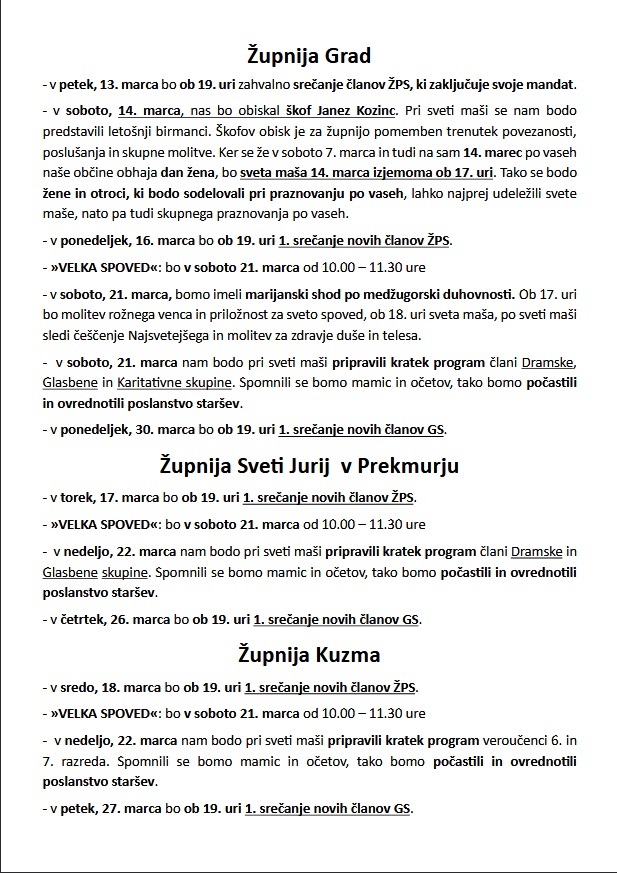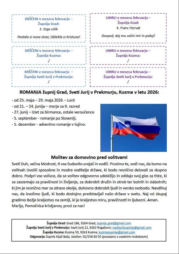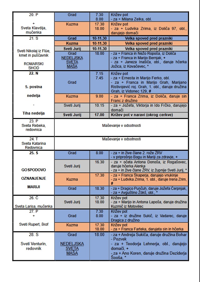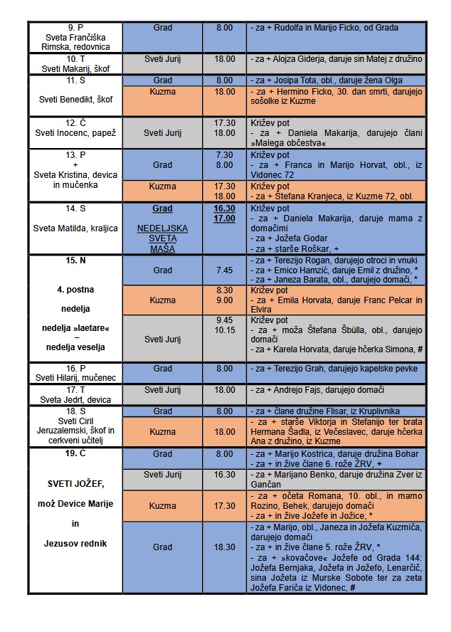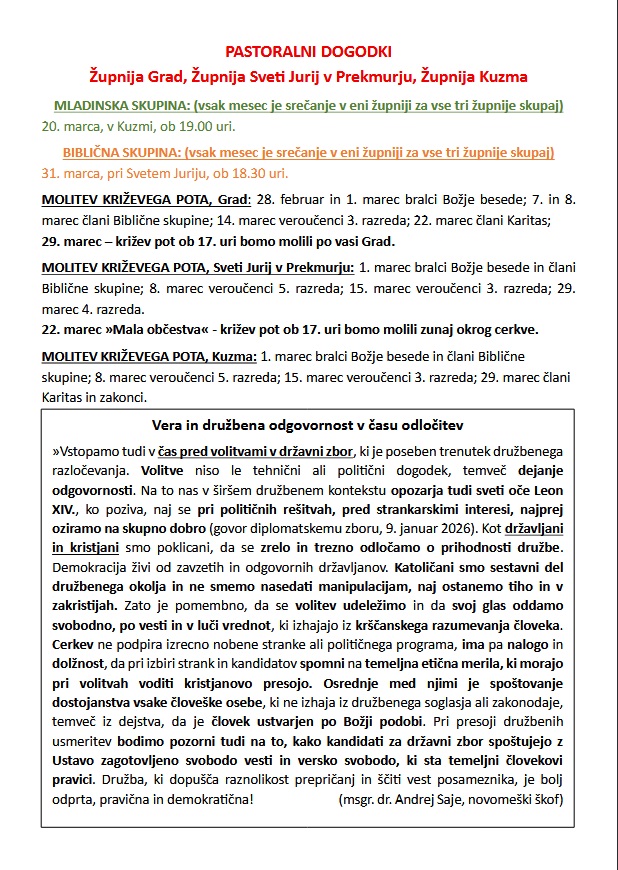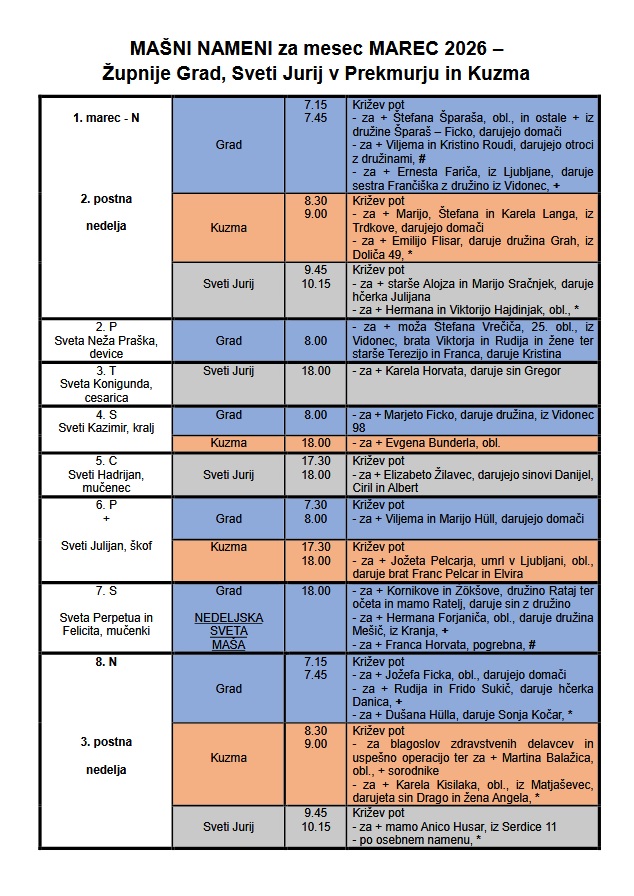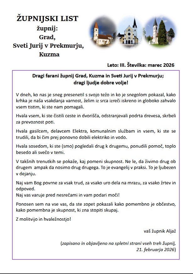 Župnijski list za mesec marec in mašni nameni za mesec marec 2026