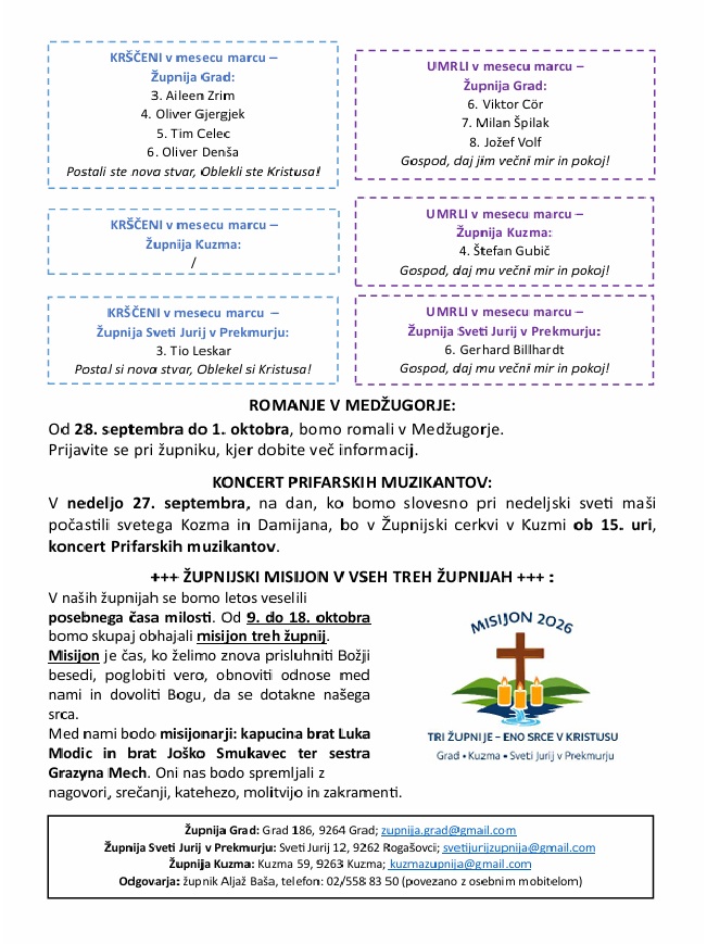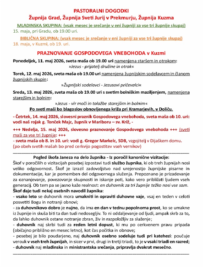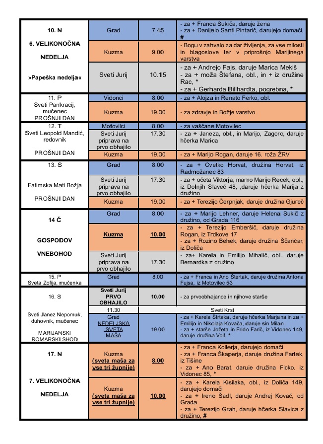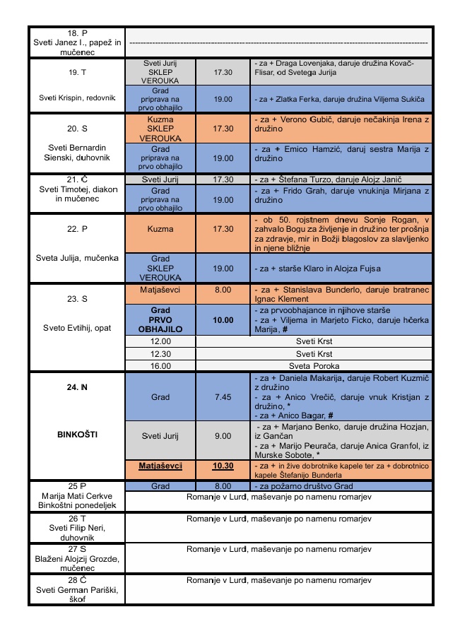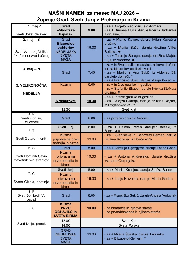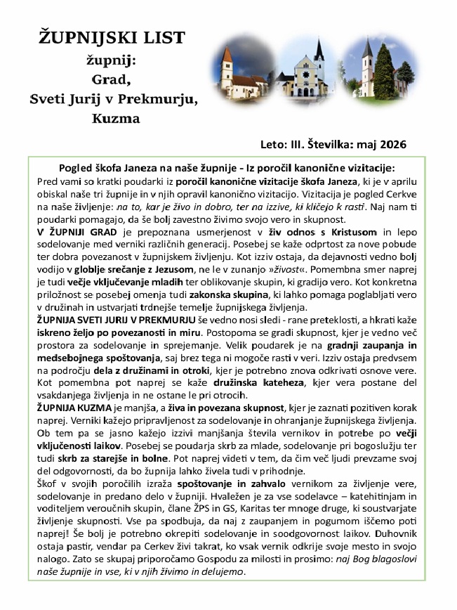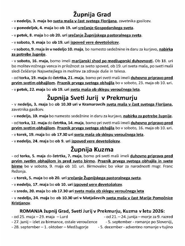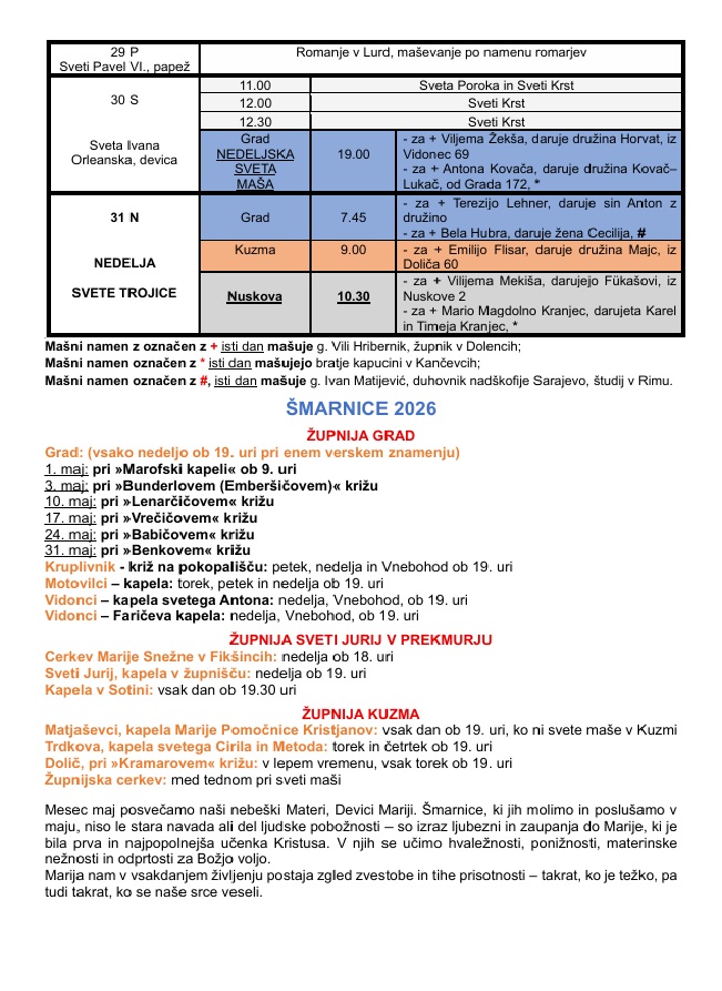 Župnijski list za mesec maj in mašni nameni za mesec maj 2026